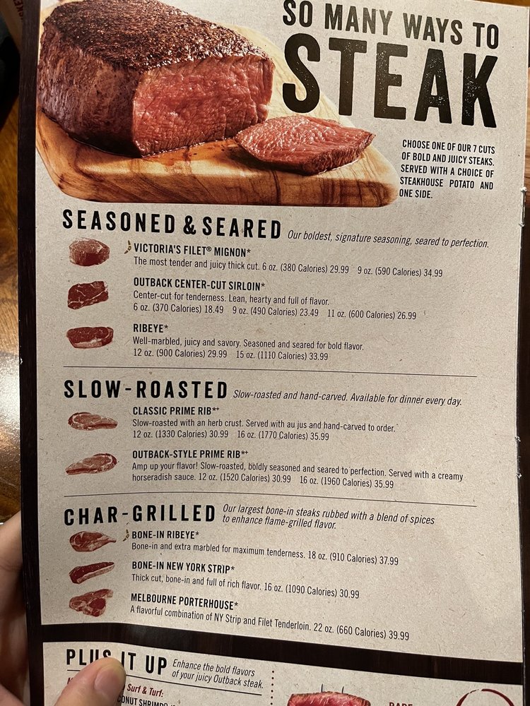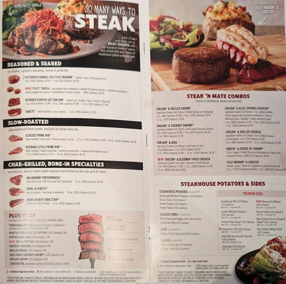 Outback Steakhouse Arcadia Menu (Update 2025)
